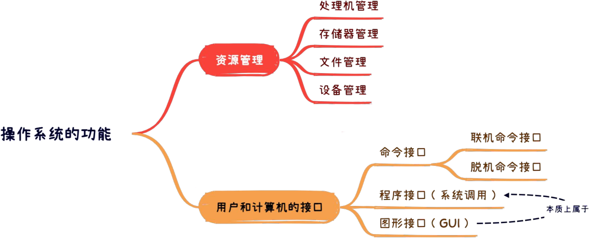 - 程序接口/系统调用/广义指令:用户通过应用程序间接控制操作系统。
