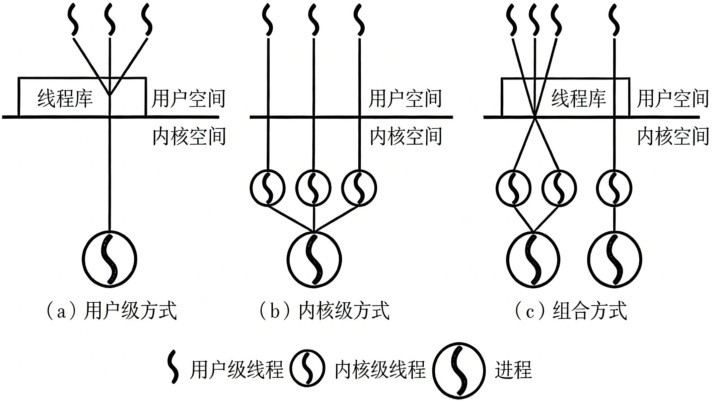- 用户级线程:由应用进程创建、调度和管理的线程。内核不了解用户级线程的存在。