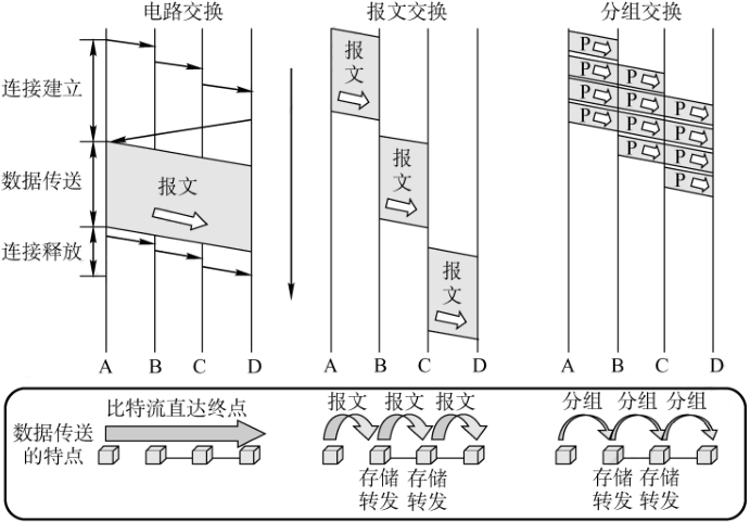 | 电路交换 | 报文交换 | 分组交换 | |||