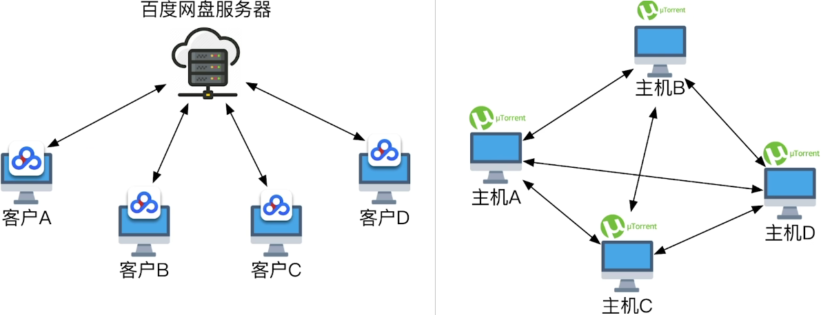 | 缺点 | 主机被服务也要服务其他主机,单主机负载较大。可能导致流量消耗大、网络拥塞 |