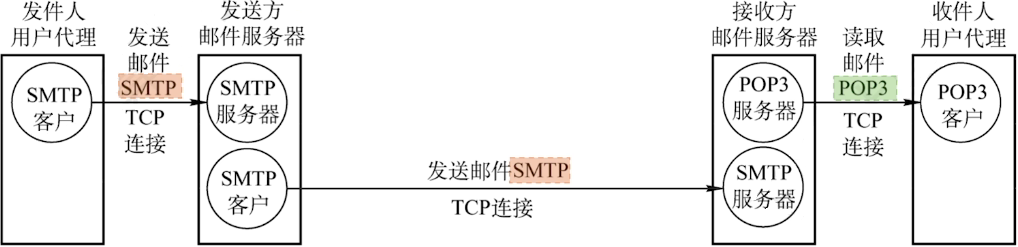 | 邮件读取协议 | 用于用户代理从服务器读取邮件,如POP3 |
