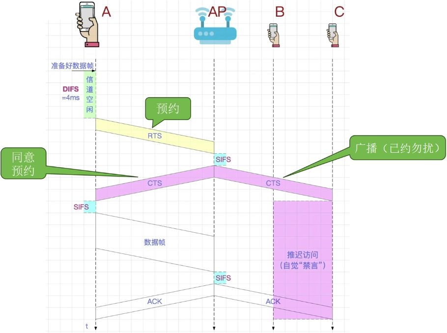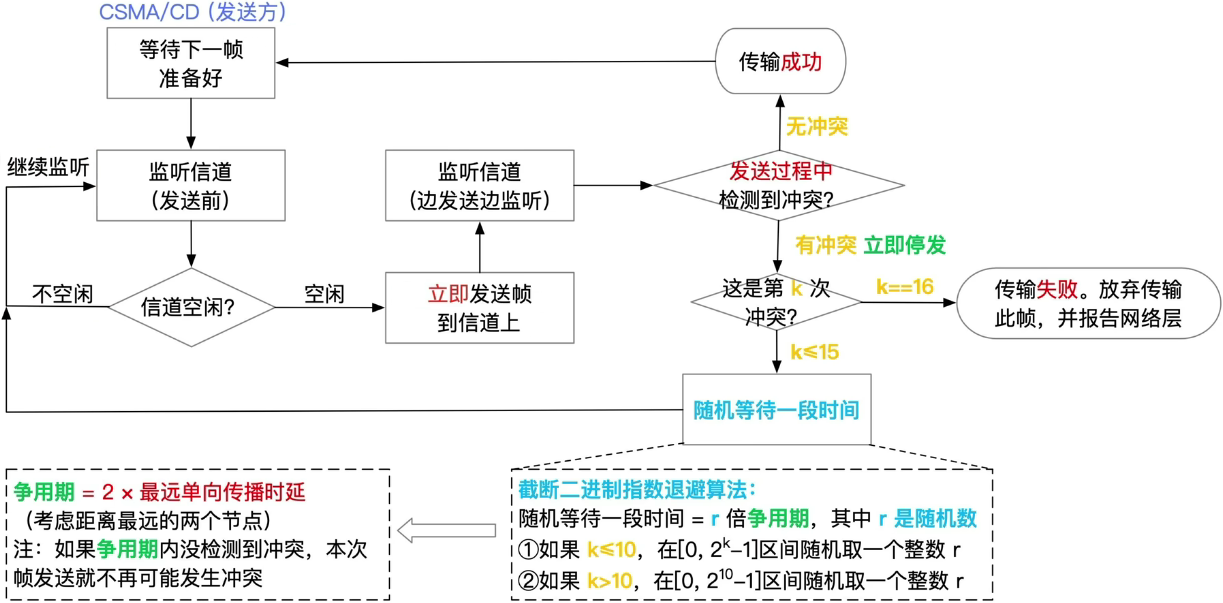 - 冲突:多个设备同时在同一传输介质上发送数据时,数据会碰撞导致失效。