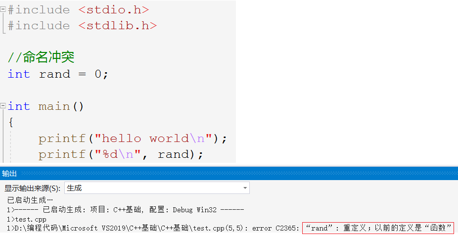 和库中的rand发生冲突。C语言没有办法解决这样的问题,C++就此提出新的语法命名空间。