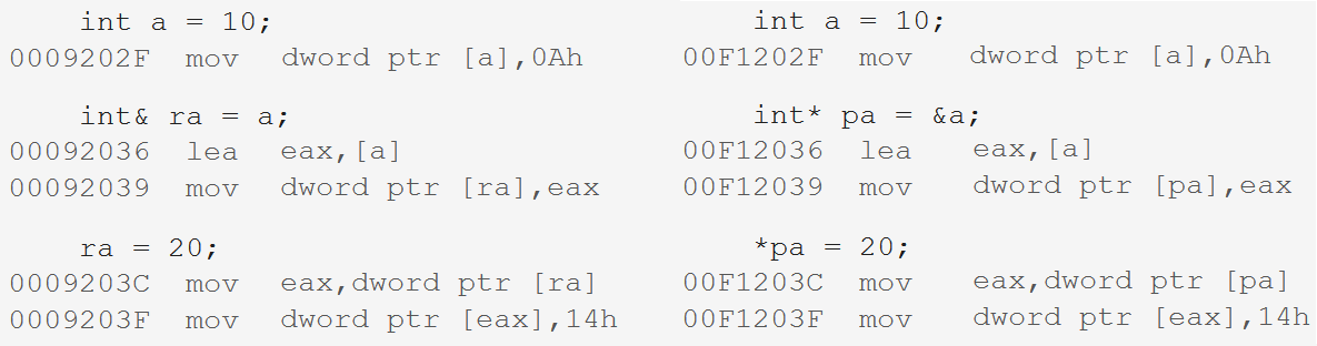引用编译器处理,相对指针更加安全 | 指针需要显式解引用 |