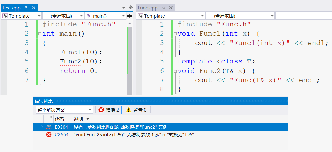 函数模板传参时不允许发生类型转换,但普通函数传参时允许发生隐式类型转换。