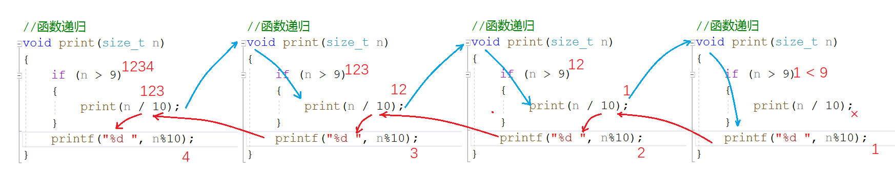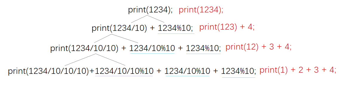 一定要有递归的出口,即当n为个位数时,函数返回n