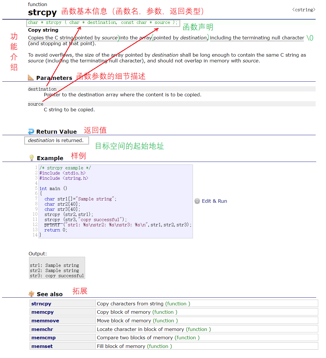 //当然这里 strcpy 函数的返回值是目标空间的首地址,故接收时也可以使用函数的返回值。