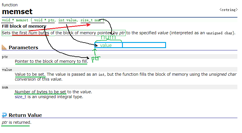 void* (void* ptr, int value, size_t num);