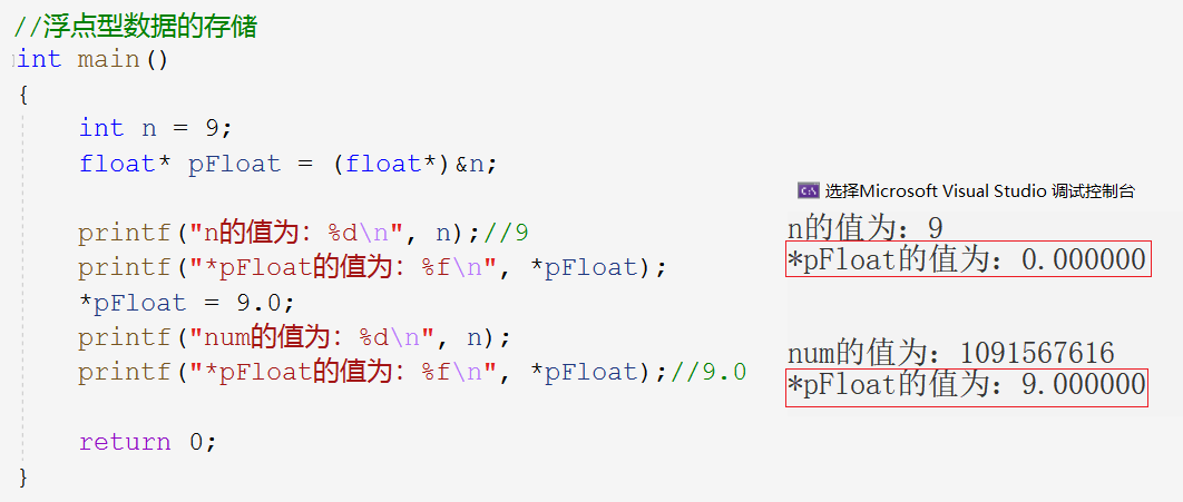 printf("*pFloat的值为:%f\n", *pFloat);//9.0