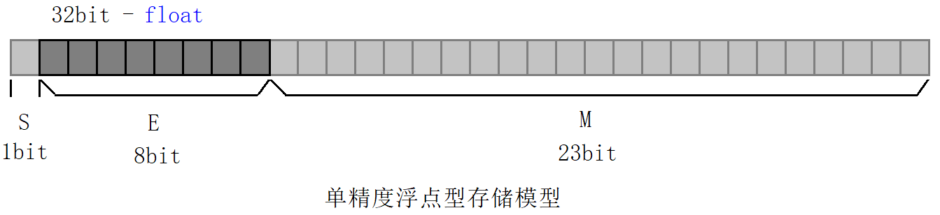 型浮点数,首位存S占1bit,其后8bit存入E,最后23bit存入M,显然这个安排是很合理的,最大化利用内存的同时,提升精度。