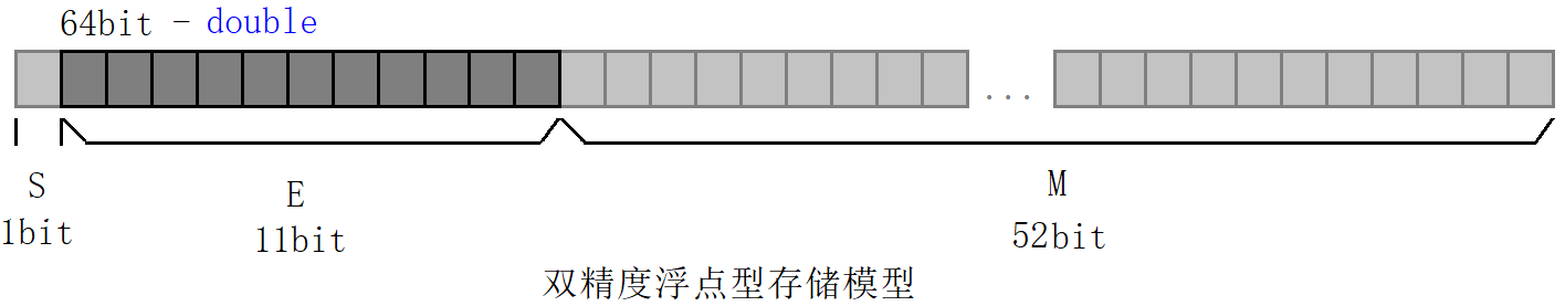 型的浮点数,首位同样存S占1bit,其后11bit存入E,最后52bit存入M,由此也可以看出,精度提高不止一倍呀。