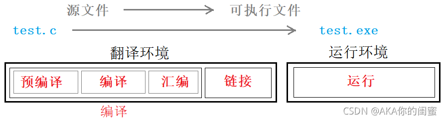 编译链接执行三个步骤,都需要为其配置不同的环境。编译和链接在翻译环境中,而执行在运行环境中发生。