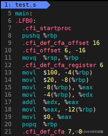 ,会自动生成汇编代码test.s