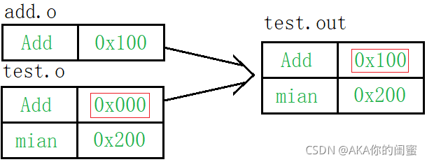 符号表的合并,是将各自的符号表合并到一起。如test.o