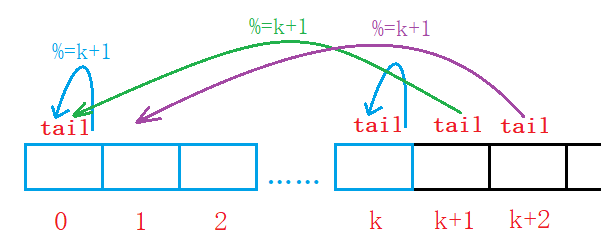 int i = (obj->tail + obj->k) % (obj->k + 1);