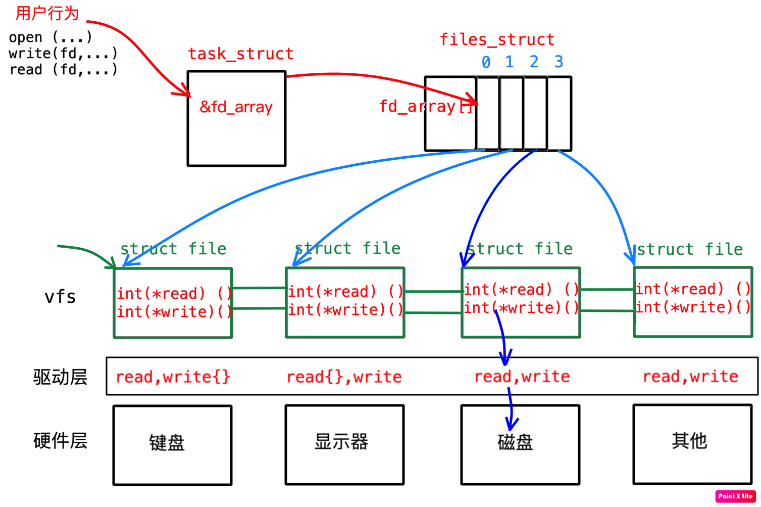 系统不需要关心底层设备细节,只需调用对应文件结构体读写方法即可。这样就能以文件视角统一的看待所有设备。这就是系统层面的多态。
