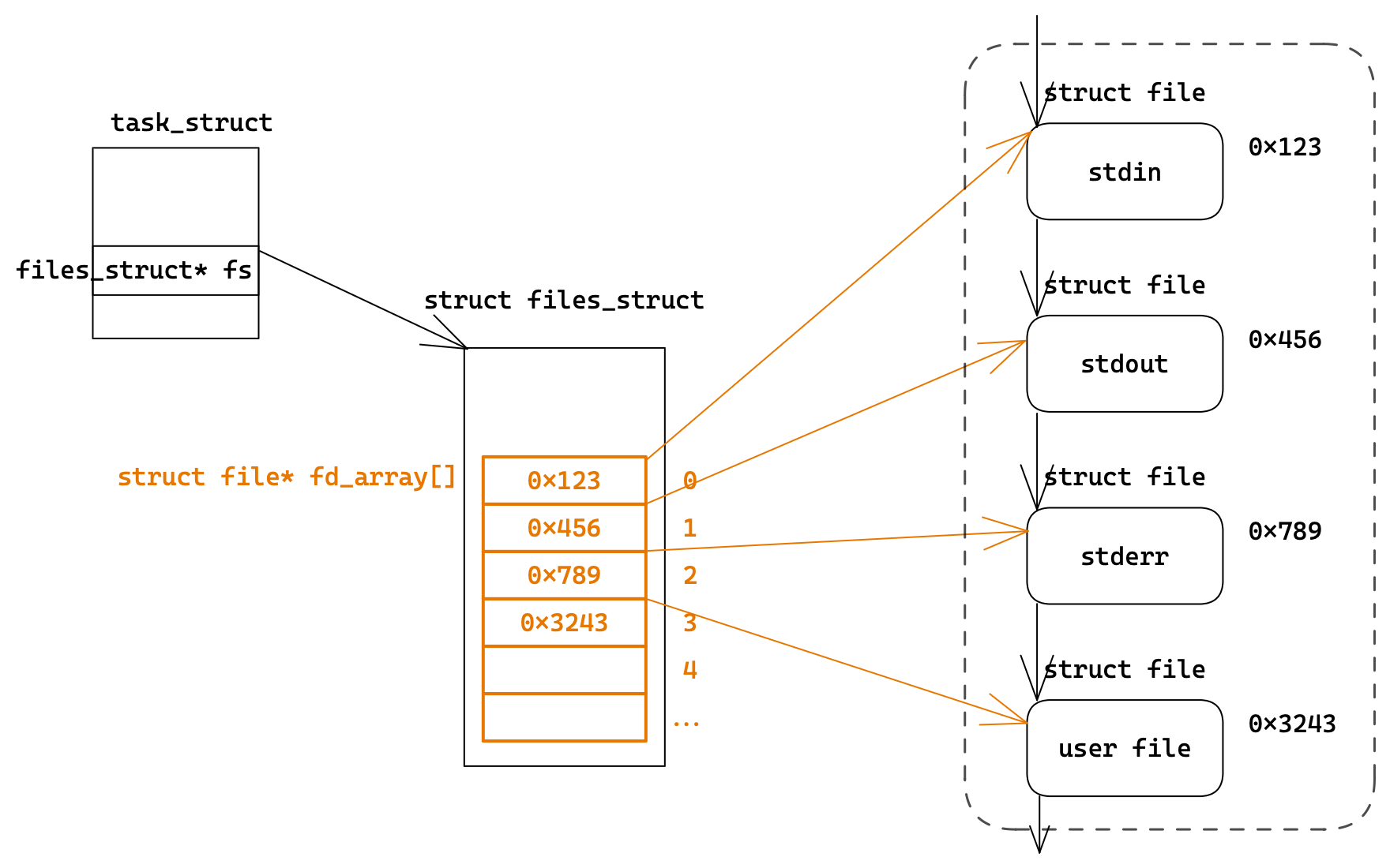 file结构体可以将内存中的文件管理起来。可如何将进程和进程打开的文件关联起来呢?