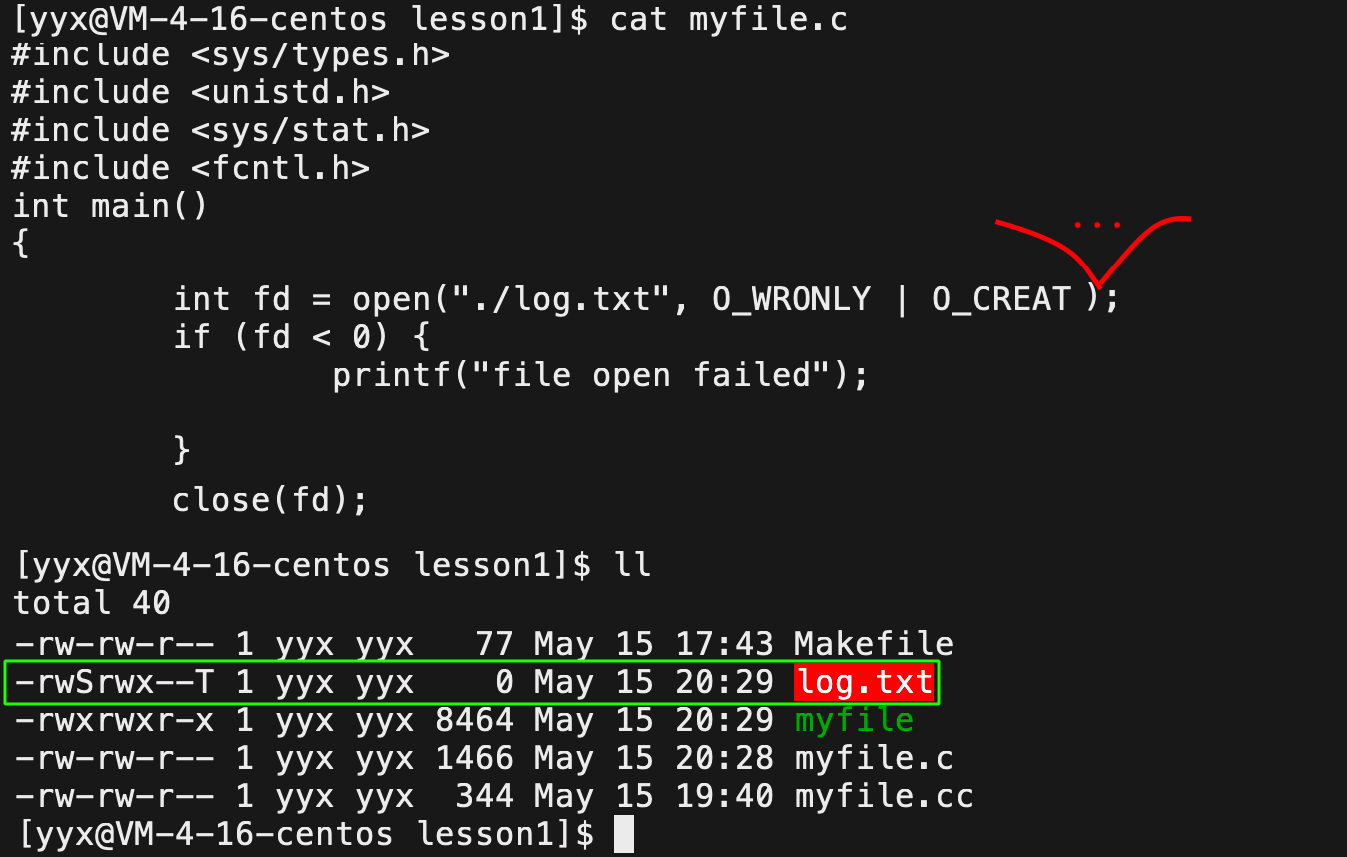 int fd = open("log.txt", O_CREAT | O_WRONLY, 0666);